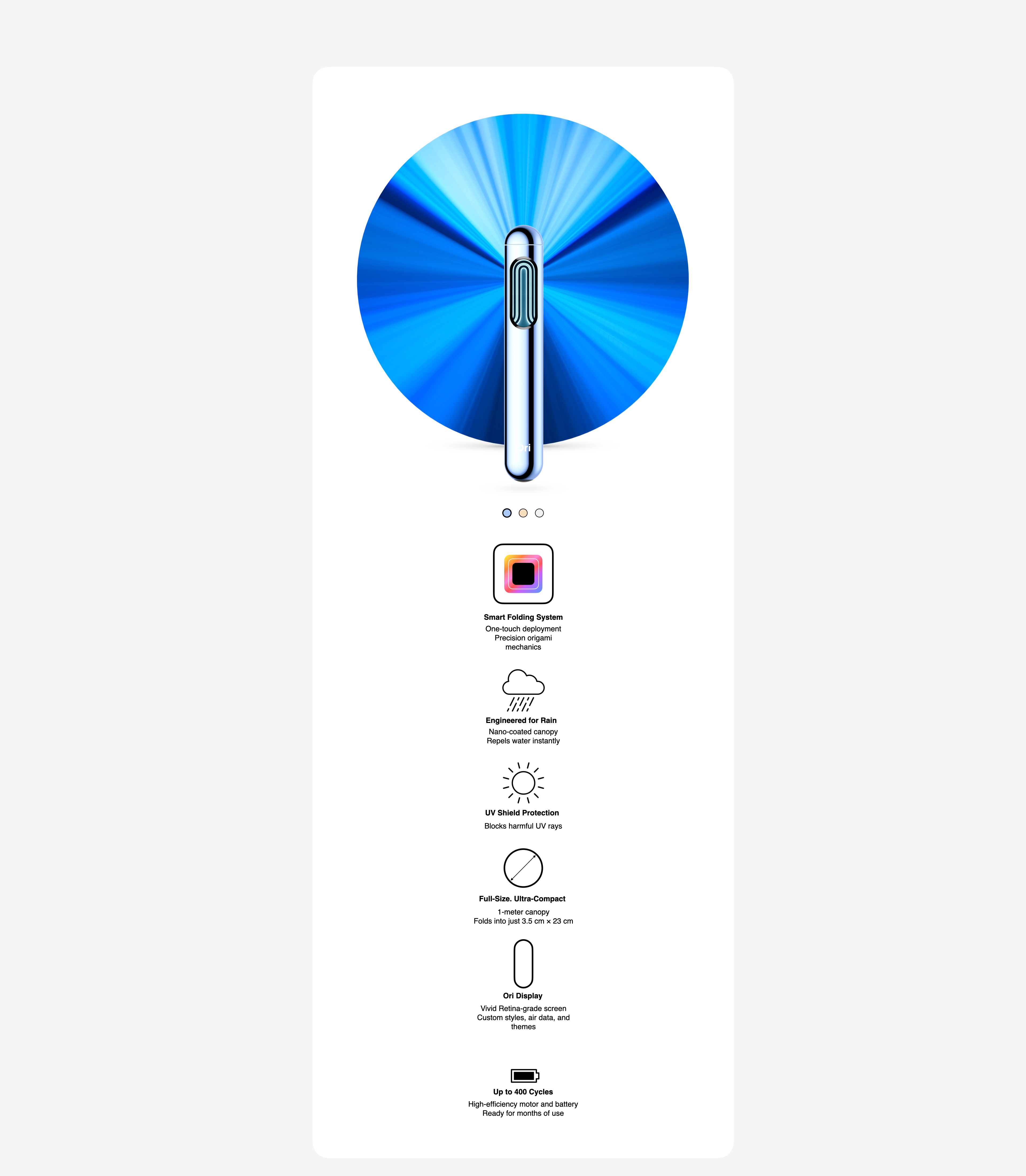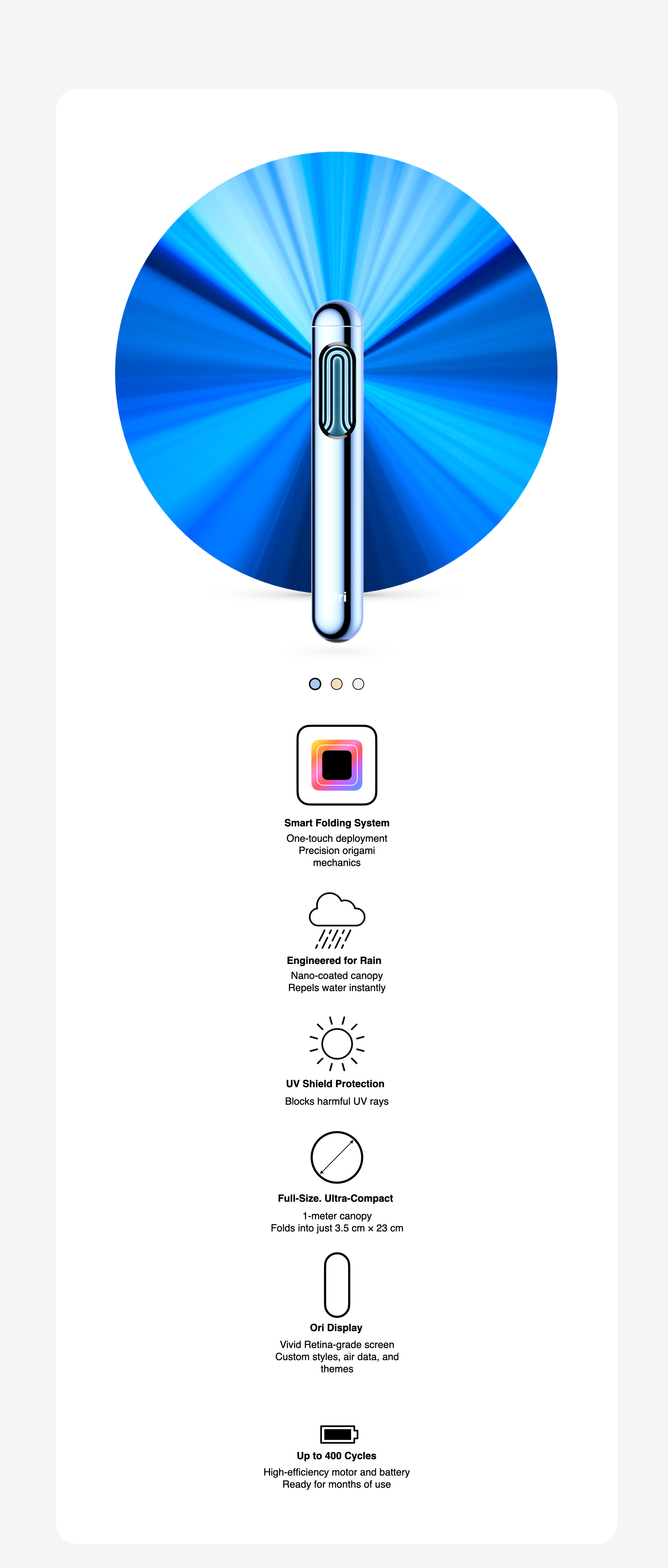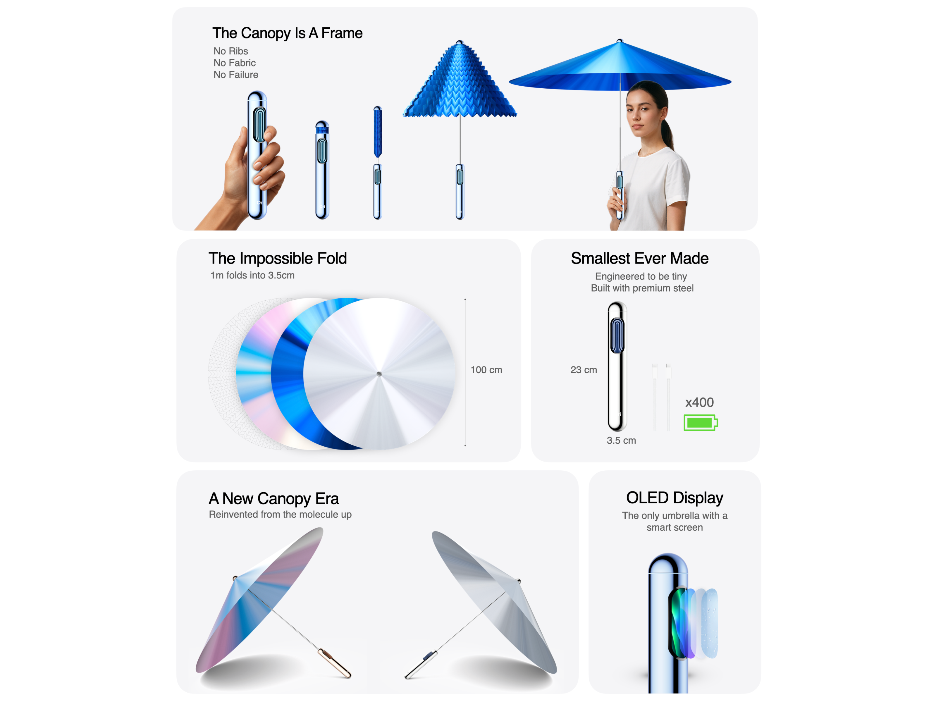 One touch. Zero ribs. Infinite innovation. The world’s first frameless umbrella powered by origami engineering.